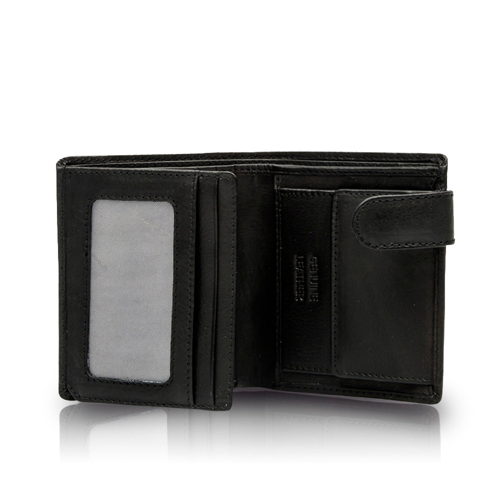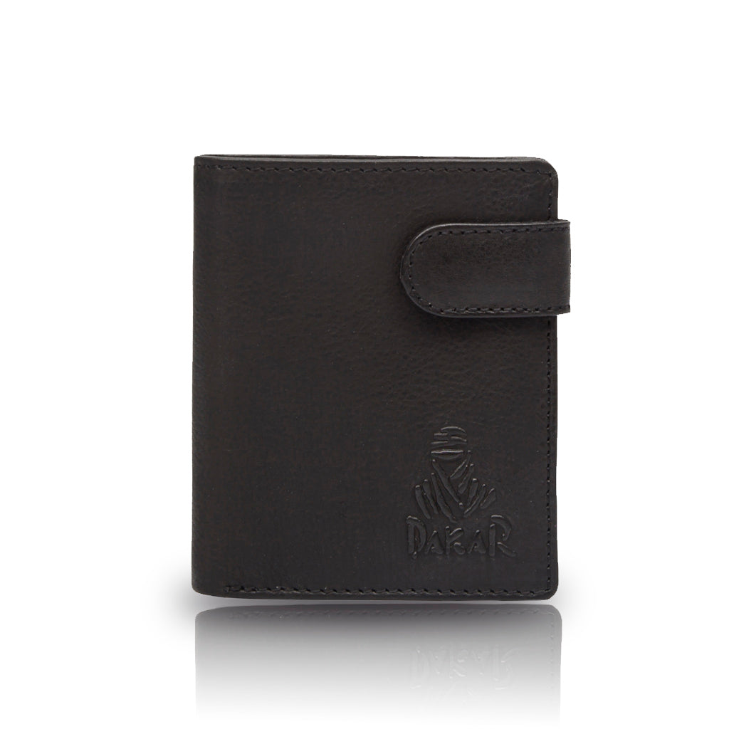 Cartera elaborada con piel de la mejor calidad, cuenta con un botón en su parte frontal que da acceso a su interior con múltiples huecos para tarjetas y billetes, otro botón interno para acceder a otro compartimento y un espacio reservado para las monedas