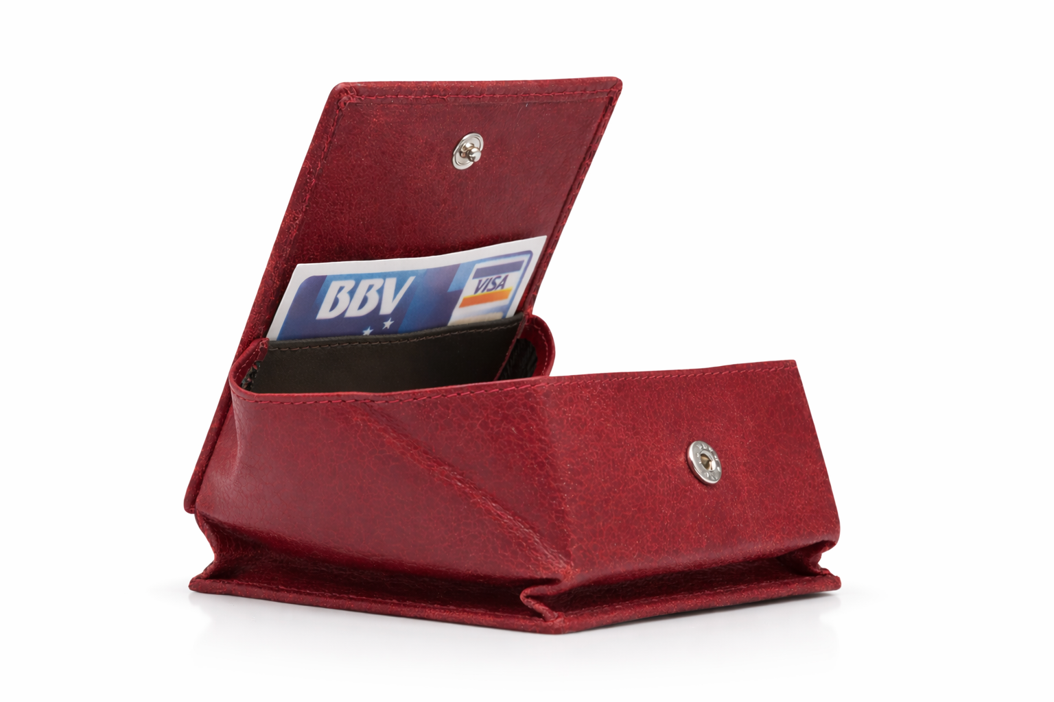 Monedero de piel con cierre de botón, diseñado para ofrecer comodidad y acceso rápido a tus tarjetas y monedas. Su estructura compacta permite guardar lo esencial de forma práctica y segura, convirtiéndose en el complemento perfecto para el día a día.